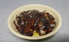 면을 그릇에 담고 짜장을 올리면 끝.